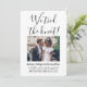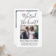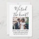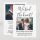 Mit diesem stilvollen, modernen "We band the knot" 2-Foto laden Sie Familie und Freunde zu einem schlicht eleganten Empfang ein. Alle Formulierungen sind einfach zu personalisieren für jeden Empfang nur Feiern, einschließlich ein Post-Emotion-Party, Verleihfeier, Fortsetzung Hochzeit, 1. Jubiläum, Cocktail-Stunde oder Abendessen Party. Passen Sie es an, um die von Ihnen gewünschten Details wie z. B. Ehedatum, Kleidercode, uAwg, Website usw. einzubinden (IMAGE PLACEMENT TIP: Eine einfache Möglichkeit, ein Foto genau so zu zentrieren, wie Sie es gewollt haben, ist es, es einzuschneiden, bevor Sie es auf die Zazzle-Website hochladen.) Das moderne minimalistische Schwarz-Weiß-Design umfasst zwei Bilder des frisch verheirateten Paares, eine trendige handgeschriebene Schriftzeichen-Kalligraphie und eine schicke Schreibmaschinentypografie. Egal, ob Sie aufgrund der Kokospanidemie entstanden sind oder auf eine kleinere, intimere Minimonie oder Mikrohochzeit reduziert werden, das Glück nach dem Party kann immer noch beginnen. Herzlichen Glückwunsch an die Braut und Bräutigam!