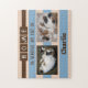 Jigsaw Puzzle Geschenk für Tierfreunde. Zuhause ist, wo meine Katze / mein Hund ist. Ersetzen Sie die 2 Fotos durch Ihr eigenes und fügen Sie einen Namen hinzu. In braun, blau und pfirsichfarben.