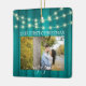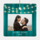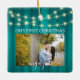 Feiern Sie den fröhlichen 1. Urlaub Ihrer Verlobung mit einem maßgeschneiderten 2 Fotos "Unser erstes Weihnachtsfest Verlobt" aquamarinen Parkettplatz Keramik Ornament. Dieses Design zeichnet sich durch einen stilvollen, aquamarinen Holzkornhintergrund mit Weihnachtslicht, handgeschriebener Stilkalligraphie, den Namen und das Jahr der Paare und zwei Fotos Ihrer Wahl aus. Dieser einzigartige Ehering-Sake fügt Xmas Zuhause Dekorationen eine elegante Touch hinzu.