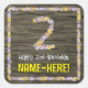 2. Geburtstag: Blumennummer, Imitate Holzbild, Nam Quadratischer Aufkleber