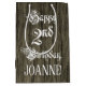 Dieses formale und aufwändige Geschenktütendesign mit dem Thema "Happy 2. Geburtstag", in luxuriösem Schrift-Stil, auf einem Imitat aus Holz inspiriert Muster Hintergrund. Es enthält auch einen benutzerdefinierten Empfängernamen. Eine Geschenktasche wie diese kann benutzt werden, wenn man ein Geschenk oder Geschenk zu Ehren eines zweiten Geburtstages von jemandem gibt. [~Z0000558]