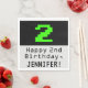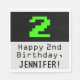 Dieses nerdige und lustige Geburtstagspapier serviert eine große grüne Vintage Computerspielstil-Nummer "2" auf schwarzem Hintergrund. Es enthält auch die Geburtstagsgrüßbotschaft "Happy 2. Geburtstag", und einen individuelle Name. Geburtstagsbezogene Papierservietten wie diese könnten sich bei einer Feier, die zur Ehre von jemandem, der seinen zweiten Geburtstag feiert, veranstaltet, als Spaß erweisen. [~Z0000404]