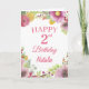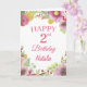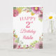 2. Geburtstag Aquarell Blume Pink Card mit personalisiertem Namen und Alter. Für weitere Anpassungen klicken Sie bitte auf die Schaltfläche "Anpassen" und verwenden Sie unser Designwerkzeug, um diese Vorlage zu ändern.