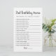 Kaufen Sie dieses bearbeitbare monochrome Spiel und genießen Sie hochwertige 2nd Birthday Trivia Wie gut kennen Sie die Karte für Ihre Veranstaltung! Dies ist eine Spielvorlage, Sie können die Fragen, wie Sie möchten ändern! Schwarzweiß-Design.