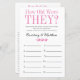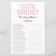Dieses schöne Brautparty-Spielblatt mit Wie alt waren sie? vorne und Wie gut kennen Sie die Bride? hinten ist einfach und charmant - perfekt für Ihre Dusche. Diese lustigen und leichten Spiele bringen sicher viel Lachen in Ihr Brautparty! Lassen Sie sich von Familie und Freunden Bilder von Braut und Bräutigam aus allen Altersgruppen senden und drucken. Nummer sie und Set sie in der Nähe dieser Spielblätter. Geben Sie jedem Gast einfach ein Blatt (vergessen Sie nicht die Stifte) und ließ den Wettkampf für das erste Spiel! Sie werden erstaunt sein, wie viele Leute wirklich die Zeiten der Braut und des Bräutigams kennen. Dann dreh das Blatt und geben Sie den Gästen 5 Minuten, um die Fragen zu beantworten. Sie werden herausfinden, wer die Braut wirklich kennt. In Sekunden können Sie sehen, wie Ihr Spielblatt aussehen wird. Wählen Sie einfach diese Vorlage personalisieren und geben Sie die Namen der Braut und des Bräutigams ein.