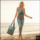 Stilvolle Frauenbeine in leuchtend gestreiften Leggings, die ein elegantes 2 IN 1 Design hervorheben, das für jeden Anlass perfekt ist.