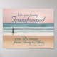 Das Zitat-Poster mit Schriftzeichen zeigt ein Mädchen, das bei Sonnenuntergang an einem schönen Meeresstrand spaziert. Es enthält Bibel Verse 2 Korinther 3:18, Wir werden in Sein Bild von Ruhm zu Herrlichkeit umgewandelt.*