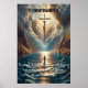 2 Korinther 5:21 Um unserer willen machte er ihn zu Sünde, die keine Sünde kannte, sodass wir in ihm die Rechtschaffenheit Gottes werden könnten Eine dramatische und ätherische Szene. In der Mitte wird eine Kreuzungsszene mit einer Figur, vermutlich Jesus, dargestellt, die auf einem Kreuz inmitten eines strahlenden Wolkenfeldes aufgehängt ist, das von einem göttlichen Licht erhellt wird. Darunter spiegelt ein riesiges Gewässer die himmlische Darstellung wider. Am Ufer des Wassers stehen mehrere Figuren, möglicherweise Jünger oder andere Anhänger, in Betrachtung oder Gebet. Die gesamte Szene ist von mächtigen Bergen auf beiden Seiten umgeben, und der Himmel darüber ist mit einer Mischung aus goldfarbenen und blauen Farbtönen gefüllt, die entweder Morgengrauen oder Abenddämmerung suggerieren.