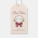 Fügen Sie Ihre Geschenke mit benutzerdefinierten Tags die perfekte Touch hinzu. Das Design zeichnet sich durch "Frohe Weihnachten" in elegantem, handgeschriebenem Skript aus, zusammen mit einem festlichen Wappen und Urlaubbug. Personalisieren Sie den Tag mit den Monogramm-Initialen des Paares und der Signatur-Zeile. Alle Farben können bearbeitet werden. © Kimbellished, LLC
