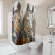 "Majestic Companions" Das Bild erfasst einen entscheidenden Moment zwischen zwei majestätischen Pferden, deren Köpfe nah in einer ruhigen Darstellung von equine camaraderie gezeichnet werden. Das Pferd auf dem links, mit seinem kräftigen braunen Fell und weißen Flicken, kontrastiert wunderschön mit seinem Begleiter, dessen orangefarbener Fell an der abstrakten Kulisse leuchtet. Ihre aufwändigen, mit Metallic- und Edelsteinverzierungen geschmückten Bridles verleihen der Szene eine Touch von echter Eleganz. Die abstrakten Streifen des Hintergrundes deuten auf eine Verschmelzung von rustikalem Charme und moderner Kunst hin, was die zeitlose Bindung dieser edlen Kreaturen unterstreicht.