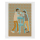 Twee mannen bij praattafel in gesprek, kleuren oker, bruin, blauw
