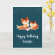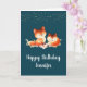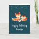 Geburtstagskarte mit einem zeichn von 2 roten Füchsen. Eine stehender die andere auf. Gezeichnet mit Aquarell.