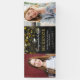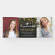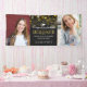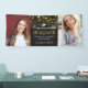 Celebrate your graduate with a graduation banner in their honor. Personalize it by uploading two photos of the graduate, and by writing their name, degree, the school, and the year between the photos in white and golden text against a dark backdrop full of bokeh in shades of gold, champagne, and yellow.