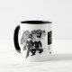 Diese Tasse hat 2 Cartoon zum Thema Polizei, einer auf jeder Seite. Funny Illustrations zeigen, wie die Polizei mit einem Feuer auf ihrer Polizeistation umgeht, und auch ein typischer Trainingstag.
