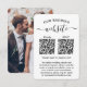 Freuen Sie sich auf eine stilvolle Hochzeitsfeier mit eleganten und einzigartigen QR-Einladungen. Mit nur einer Karte können Sie Hochzeitsgäste zu Ihrer anstehenden Feier einladen, alle wichtigen Informationen (wie Anfahrtsbeschreibung, Registrierung, Hotelunterkunft) zur Verfügung stellen und die Website für die Organisation der uAwg's gelassen werden. Es werden keine zusätzlichen Gehäusekarten benötigt. Die Bilder und alle Formulierungen auf dieser Vorlage sind einfach zu personalisieren, um alle Details Ihrer Wahl einzuschließen. (IMAGE PLACEMENT TIP: Eine einfache Möglichkeit, ein Foto genau so zu zentrieren, wie Sie es gewollt haben, ist es, es einzuschneiden, bevor Sie es auf die Zazzle-Website hochladen.) Das moderne, minimalistische Schwarz-Weiß-Overlay-Design umfasst zwei Fotos des verlobten Ehepaares, 2 benutzerdefinierte QR-Codes und eine stilvolle klassische Typografie. Durch das Scannen eines QR-Codes mit einer Telefonkamera werden die Gäste direkt auf die Hochzeitswebsite geschickt, um weitere Details zu erhalten und auf die Einladung zu antworten. Ein Online-uAwg verringert die Wahrscheinlichkeit, dass die Karten in der E-Mail verloren gehen. Es ist auch vielseitiger, da man für spezifischere Informationen frage, wie zum Beispiel Essensauswahl, Lebensmittelallergien und Gesangswünsche. Alle Antwortinformationen können individuell angepasst oder gelöscht werden. Diese zeitgenössische Einladung macht Ihre bevorstehende Feier zu einem eleganten Zusatz. Herzlichen Glückwunsch an die Braut und Bräutigam!