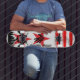 2 rote Stern-Zombie-Sturmhaubeslayer-Skateboard-Plattformen. Zombies gegen Menschen-Reihen. Addieren Sie Ihren eigenen Text. Fertigen Sie ihn besonders an!