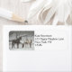 Landschaftliches Naturbild mit 2 Pferden, die unter einem Baum in einem Schneesturm stehend sind.