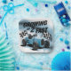 Eine wunderschöne Aquarell-Illustration, die perfekt für eine renommierte Geburtstagsparty zum Thema Rennwagen geeignet ist! Mit einem staubblauen Kinderwagen mit schwarzen Rädern, gepaart mit fett schwarz-weiß karierten Fahnen. Set vor einer staubblauen Rennstrecke, ergänzt das Design mit dem spielerischen Text "Growing up 2 Fast". Ideal für Party Einladungen, Dekorationen oder Keepsakes, um den besonderen Tag Ihres kleinen Rennfahrers stilvoll zu feiern!
