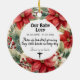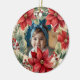 Dieses elegante zweiseitige Weihnachtsdenkmal ist eine herzliche Erinnerung an einen geliebten Menschen. Die Vorderseite zeigt ein Foto, das von einem festlichen Kranz aus Kiefernästen, roten Beeren und Poinsettien umgeben ist. Die üppige Vegetation und die warmen Farben schaffen ein gemütliches Urlaubsatmotiv und machen es zu einem gepflegten Sake. Der Rücken kann mit ihrem Namen, ihren Daten oder einer besonderen Botschaft personalisiert werden und eine liebevolle Erinnerung bieten, die für Jahre geschätzt wird. Dieses Ornament ist perfekt, um ihre Erinnerung zu ehren. Es vereint Wärme und Eleganz und feiert ihre Anwesenheit während der Feriensaison.