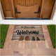 Herzlich willkommen bei Ihren Gästen Cowboystiefel auf rustikalem Holzfußboden. Personalisieren Sie den Text, entfernen Sie jeden Text oder bearbeiten Sie ihn mit dem Designwerkzeug, um einen Schriftart auszuwählen, den Sie bevorzugen. Eine großartige Idee für die Hauswärmung oder Hochzeitsgeschenke. Sie können dieses Design auch, wo es passend ist, zu einem der Produkte hinzufügen, die in der Transfer-Scroll-Bar auf dieser Seite wie das Serviertablett oder die Badematte.
