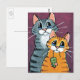 2 Tabby Katzen mit Toy Mouse Illustration Postkarte