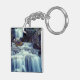 Christlicher inspirierender Zitat-Schlüsselanhänger zeigt ein Naturfoto eines wunderschönen Wasserfalls. Es zeigt ein Kreuz und einen Teil eines ermutigenden Bibelverses 2 Timothy 4:17, "Der Herr stand mit mir und gab mir Kraft."