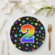Dieses lustige, fröhliche und farbenfrohe Papier-Plattendesign zeichnet sich durch eine große Zahl "2" aus, die eine inspirierte Farbgebung des Regenbogenspektrums enthält. Der Hintergrund weist ein buntes Muster von Sternen-Formen auf. Teller wie diese können bei einer Feier verwendet werden, um jemandes zweiten Geburtstag zu würdigen, oder ein zweites Hochzeitstag, oder ein anderes zweites Ereignis. [~Z0000493]