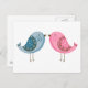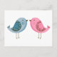Zwei süße und bezaubernde Vögel, einer blau und einer pink.