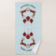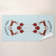 Ein Handtuch-Set, das "Frohe Weihnachten" in kurvigem Text sagt. Entworfen mit einer Illustration von 2 Weihnachtswildspringen. Hirsche sind kariert aus schwarzem und rotem Lumberjack, dazwischen liegt ein kleines Herz. Karierte Weihnachtsdekorationen in Rot und Schwarz hängen von oben ab. Hellblauer Hintergrund.