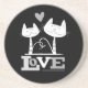 2 weiße Katzen in der Liebe (b&w) Sandstein Untersetzer