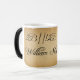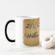 Verwandelnde Tasse, die ein Bild des Pergamentpapiers hat, das aufdeckt, wann warme Flüssigkeit der Schale hinzugefügt wird. Text auf dem Pergament liest 2B||! 2B. Eine humorvolle neue Drehbeschleunigung auf die klassischen Wörter setzen eingesperrt von William Shakespeare.