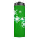 2d Abbildung. Schneeflocken im Hintergrund. Holy C Thermosbecher