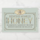 Elegantes Honigetikett mit aufwändigen Rahmen und heraldischer Honigbiene. Personalisieren Sie Ihre Imkerei mit Ihrem Firmennamen, Ihrem Nettogewicht, Ihrem Imkerstandort und Ihren Kontaktinformationen. Honig ist in einem "geprägten" Schriftart aus Gold geschrieben. Vintage mittelalterliche Abbildung einer Honigbiene aus Großbritannien in einem metallischen Goldoval.