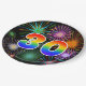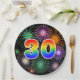 Dieses lustige, fröhliche und farbenfrohe Papier-Plattendesign zeichnet sich durch eine große Zahl "30" aus, die eine inspirierte Farbgebung des Regenbogenspektrums enthält. Es zeichnet sich auch durch ein spannendes und lebendiges, aufstrebendes Feuerwerk inspiriert Muster aus. Der Hintergrund ist schwarz. Teller dieser Art können in einem Party zum dreißigsten Geburtstag, zum dreißigsten Jahrestag oder zu einem anderen dreißigsten Ereignis verwendet werden. [~Z0000490]