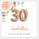 Für ein elegantes und feminines 30. Geburtstagsfest.. Party. Ein schick weißer Hintergrund. Dekoriert mit einer Rose Gold und rot rosa Rose Blume, florale, grüne Eukalyptus Blätter, Sprigs, Grün und Imitat Goldsprigs. Personalisieren und einen Namen. Schwarze und goldene Buchstaben. Der Name ist mit einem modernen handgeschriebenen Stilskript geschrieben. Nummer 30 ist mit einem goldenen Schriftart im Ballonstil geschrieben.