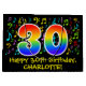 Dieses lustige, lebendige und farbenfrohe Geschenktütendesign mit Geburtstagsthema zeigt eine große Zahl "30" mit einem inspirierten Regenbogenspektrum-Gefälle, zusammen mit der Meldung "Happy 30 th Birthday" und einem personalisierten Namen. Ein Teil des Hintergrundes hat farbenfrohe Musiknoten und Symbolmuster. Eine Geburtstagsgeschenktüte wie diese könnte eine lustige Art sein, ein Geschenk oder Geschenk für einen Musiker, einen Musikkomponisten, einen Sänger oder jemanden, der seinen dreißigsten Geburtstag feiert, einzupacken. [~Z0000425]