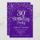 30. Geburtstag Party Einladung. Elegantes Design in königlichen lila und Imitate Glitzer Silber. Features stilvolle Skript-Schriftart und Konfetti. Nachricht, wenn du ein Alter brauchst.