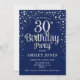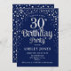 30. Geburtstag Party Einladung. Elegantes Design in dunkelmarineblau und Imitate Glitzer Silber. Features stilvolle Skript-Schriftart und Konfetti. Nachricht, wenn du ein Alter brauchst.