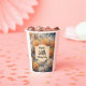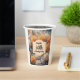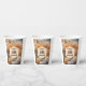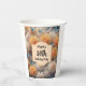 Feiern Sie jedes Alter mit einer schönen, anpassbaren Papiertasse. Herrliche Rosa- und Orangenchrysanthemen mit blauen Schmetterlingen und üppiger Vegetation. Ein elegantes und dennoch hübsches Design.