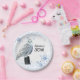 Schneeeule auf einem Pfosten mit Schneeflocken im Hintergrund. Passen Sie mit dem Namen und Alter des Geburtstagsmädchens auf. Finden Sie passende Geburtstagsprodukte in meinem Geschäft.