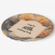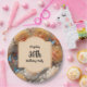 Feiern Sie jedes Alter mit einer schönen, individuell anpassbaren Papierplatte. Herrliche Rosa- und Orangenchrysanthemen mit blauen Schmetterlingen und üppiger Vegetation. Ein elegantes und dennoch hübsches Design.