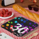 Neon Regenbogen Punktmuster auf schwarzem Hintergrund für das 30. Party. Alter kann bearbeitet werden.