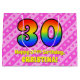 Dieses fröhliche und festliche 30. Geburtstag Thema Geschenktasche Design zeigt eine große Zahl "30" mit einem Muster inspiriert durch das Aussehen eines Regenbogenspektrums. Es enthält auch die Meldung "Happy 30 th Birthday", gefolgt von einem individuelle Name. Der Hintergrund weist ein fröhliches Muster aus hellrosa und dunkelrosa Streifen auf, die sich in liebevollen rosa Herzformen auszeichnen. Eine Geschenktasche wie diese kann verwendet werden, wenn Geschenke oder Geschenke verpackt werden, um jemandes dreißigsten Geburtstag zu feiern. [~Z0000414]