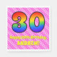 Dieses lustige und festliche 30. Geburtstag Thema Papier Serviette Design hat eine große Zahl "30" mit einem bunten Muster inspiriert durch das Aussehen eines Regenbogenspektrums. Es enthält auch die Meldung "Happy 30 th Birthday", gefolgt von einem personalisierten Namen. Der Hintergrund ist mit hellrosa und dunkelrosa Streifen mit liebevollen rosa Herzformen untermalt. Geburtstagsbezogene Papierservietten wie diese könnten sich bei einer Feier, die zur Ehrung von jemandem, der seinen dreißigsten Geburtstag feiert, veranstaltet, als Spaß erweisen. [~Z0000417]