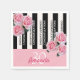 Elegante, klassische, glamouröse und feminine Serviette zum 30. Party. Klassische, schicke schwarz-weiße Streifen. Rosa Blume, Rose. Vorlagen für einen Namen und Alter 30. Mit dem Wort wiederholt: Herzlichen Glückwunsch. Mädchen und elegant! Der Name in Rosa wird mit einem angesagten, handgeschriebenen Stilskript geschrieben. Rosa Hintergrund.