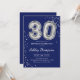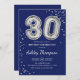 Party Einladung zum 30. Elegantes Design in Imitaten Glitzer Silber und Marineblau. Einladende Karte verfügt über Silber-Nummer 30 Ballons und Skript-Schriftart. Ideal für eine stilvolle Feier. Nachricht, wenn du ein Alter brauchst.