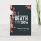 R.I.P. bis zum Jahrzehnt der Dekadenz! Diese 30. Geburtstagskarte verfügt über einen gotischen Schädel mit Aprikosen-, Schwarz- und Bordeaux-Blume auf schwarzem Hintergrund. Text "Tod in den 20ern, Entschuldigung für deinen Verlust". Bleiben Sie bei Ihrer persönlichen, handgeschriebenen Nachricht drinnen.