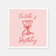 Wie Sie sehen, diese einzigartige und elegante Geburtstagserviette hat eine gut gestaltete Vorlage. Mit roter Hand gezeichneter Bugband Champagner Gläser mit Meilenstein 30. in ihm mit whimsical handgeschriebenem Namen. Alle auf rosa Hintergrund. Sie können sich einfach anpassen, indem Sie die Taste "Personalisieren" drücken.