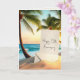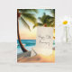 Ein leeres Einladungspapier mit einer Erholung auf einem Sandstrand vor dem Hintergrund sanft schwingender Palmen und eines ruhigen Ozeans unter einem pulsierenden Sonnenuntergang zum 30. Jubiläum. Alle Texte können geändert werden.