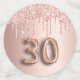 Girly und feminine Confetti zum 30. Geburtstag Party. Eine Rose Gold Imitate metallisch, Folie aussehend mit Imitaten Rose Gold Glitzer Tropfen. Personalisieren und fügen Sie ihren Namen/Text hinzu. Dunkle Rose goldfarbene Buchstaben. Einige Konfetti-Chips mit Namen und Datum, andere mit der Nummer 30 geschrieben mit einem Ballon Stil Schriftart, und mit dem Text Happy Birthday.